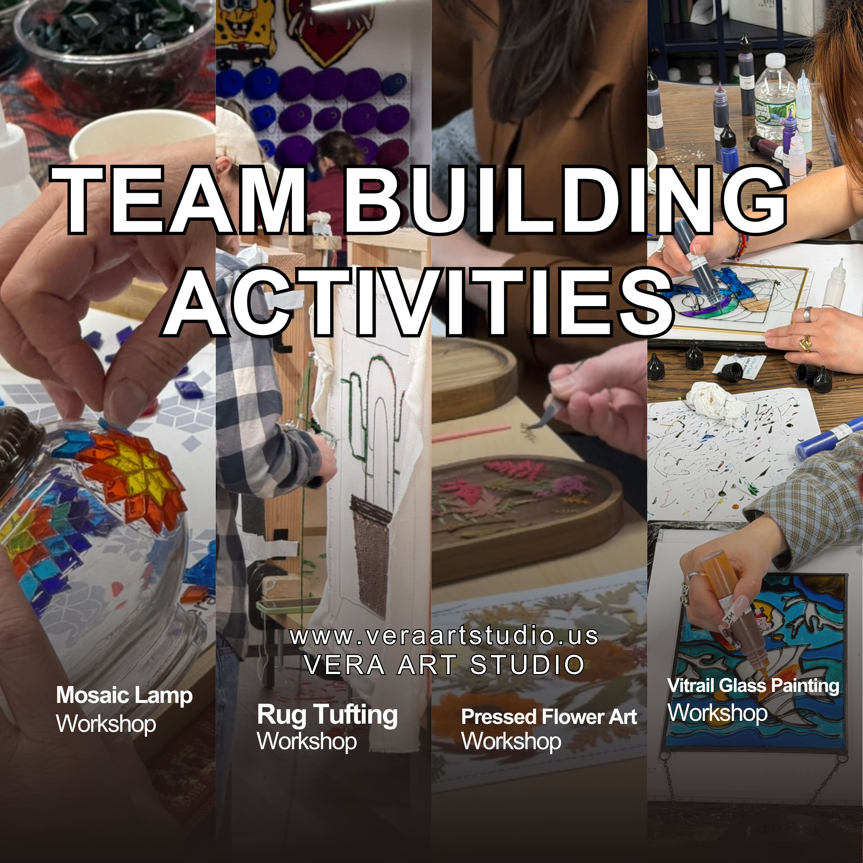 We can host up to 100 guests at Vera Art Studio, (We can host from 20 to 200 or more at your place), offering a creative and comfortable space for your special craft workshop event.